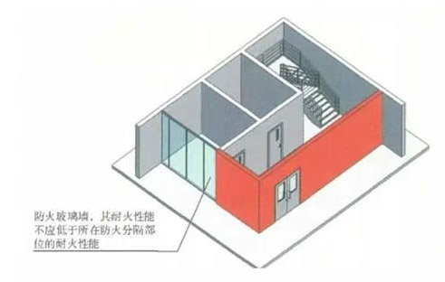 这些标准规范为玻璃墙(窗)防火设计提供了明确的指导和要求,确保玻璃墙(窗)在火灾条件下能够满足耐火稳定性、耐火完整性和隔热性能的要求。《建筑防火通用规范》第6.4.9条规定:用于防火分隔的防火玻璃墙,耐火性能不应低于所在防火分隔部位的耐火性能要求。(防火玻璃墙所在示意图见图3)