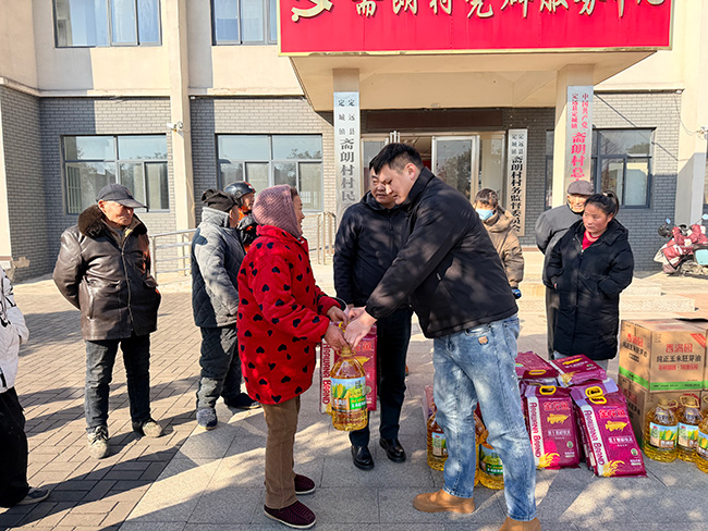 2月8日上午,滁州市鸿泰阳光装饰工程有限公司赴安徽定远县斋朗村开展新春慰问活动。总经理陆华春,工程部梅剑、梅岚棣、周天桥、刘谣等参加慰问活动。为斋朗村困难群众送上了大米、食用油等慰问品,践行社会责任,回馈社会,彰显青年企业家担当!